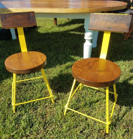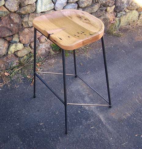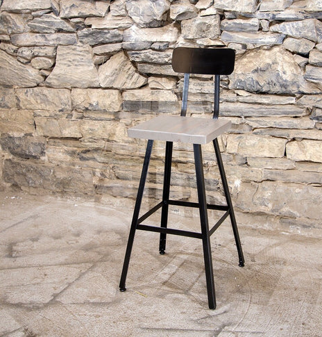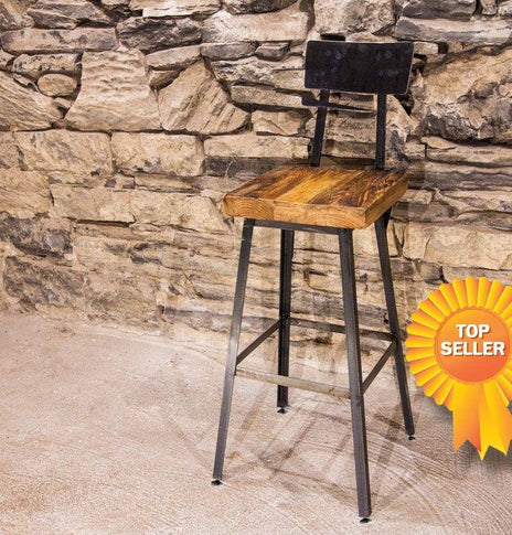 Wood Bar Stool, Patio Stool, Wood Chair With Back These old style factory stools are perfect for your patio, pool area, outdoor barbecue, kitchen, basement bar or restaurant. Made from solid reclaimed oak and welded...