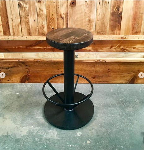 Outdoor Bar Stools, Bolt Down Bar Stools, Rustic Modern Bar Stool Our outdoor rated industrial chic pedestal bar stools with unique, richly textured reclaimed wood tops are available in a variety of stain colors. They...