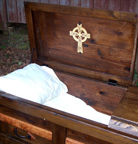 Wood Casket, Wood Coffin, Reclaimed Wood Casket This simple yet elegant solid wood casket is hand crafted from 100 year old antique lumber reclaimed from old barns in the Shenandoah Valley. Designed to be be...