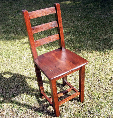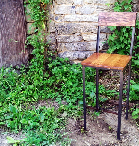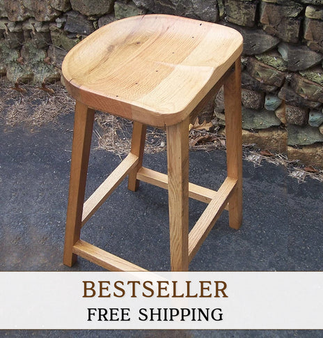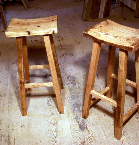 Handcrafted from solid oak, these chairs are a lovely rustic touch to any bar, kitchen counter or dining room. Featured here at bar height with a dark oak stain, though of course custom sizing and staining is always available.