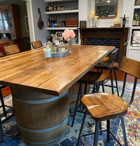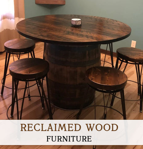 Beautiful Antique Barn Wood Rustic Bar Stools made from reclaimed oak with a classic spindle back and swivel seat, finished with your choice of stain.