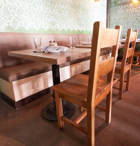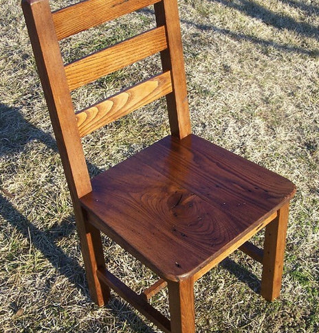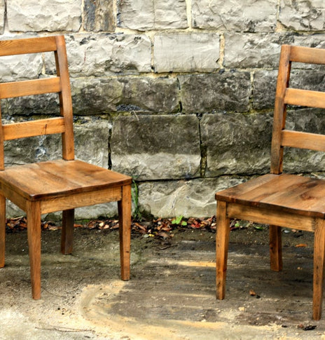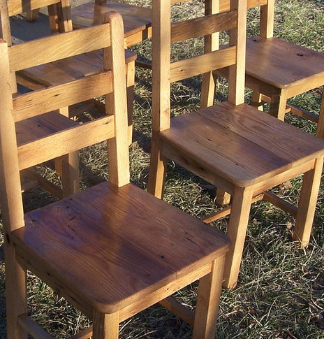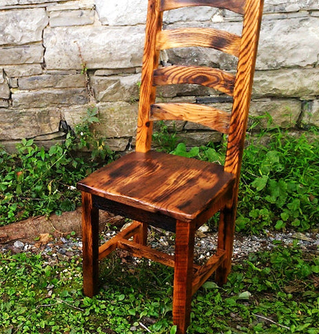 Beautiful Antique Barn Wood Dining Chairs made from reclaimed oak in a classic ladderback style, finished with your choice of stain.